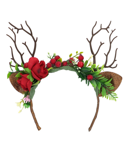 RazprodanoNaglavni trak iz rogovja severnega jelena s cvetjem za odrasle