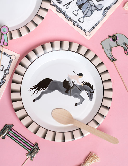 Razprodano10 kartonskih krožnikov s konjeniško tematiko 22,5 cm roza konj