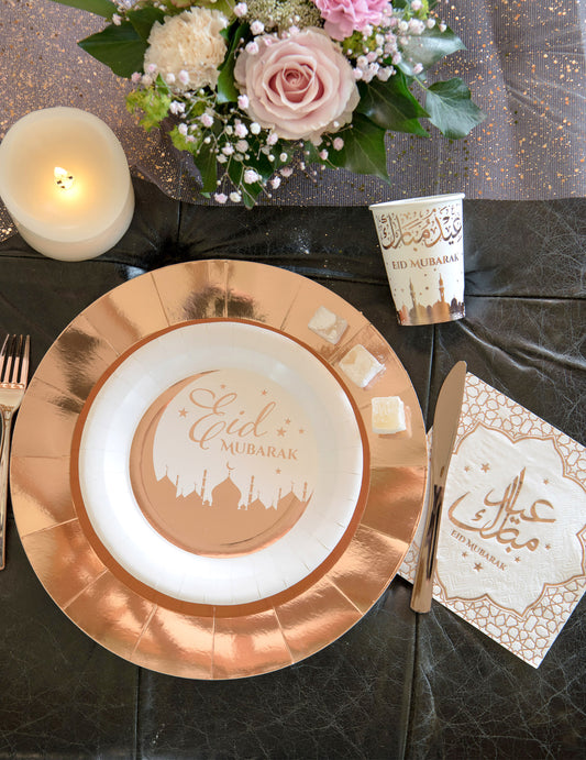 10 kartonskih krožnikov v roza zlati barvi za Eid Mubarak 23 cm motiv palače