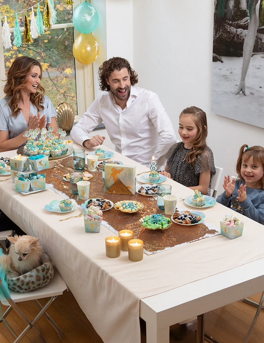 Razprodano10 kartonskih krožnikov, za fantka ali dekle, 23 cm zlata turkizna