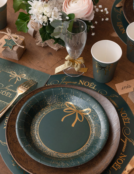 Razprodano10 zelenih in zlatih božičnih papirnatih krožnikov 23 cm šik dizajn
