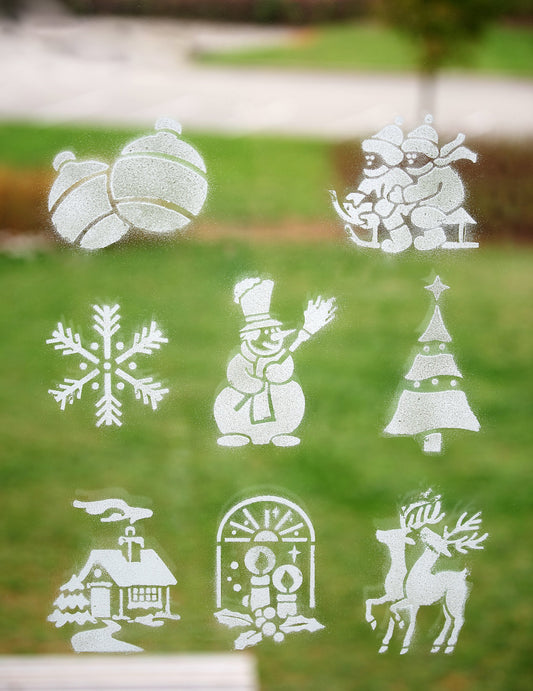 Vključeno : 1 lažno snežno razpršilo, 8 šablonov