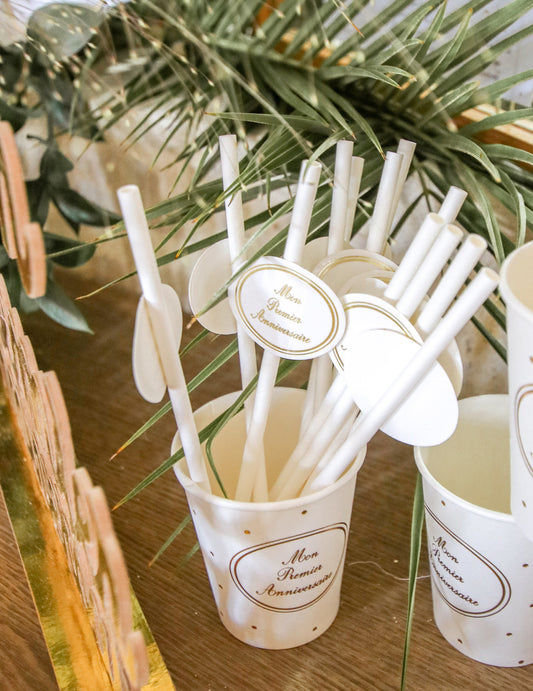 Vključeno: 12 pailles en plastique réutilisables, 1 brosse type goupillon