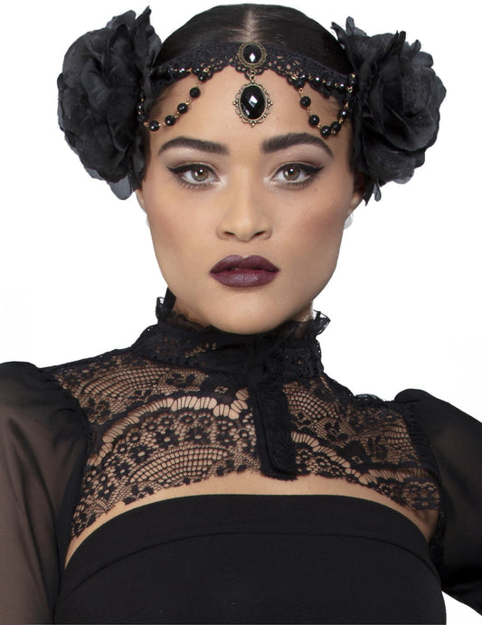 RazprodanoČrna gotska kapica z odraslimi vrtnicami