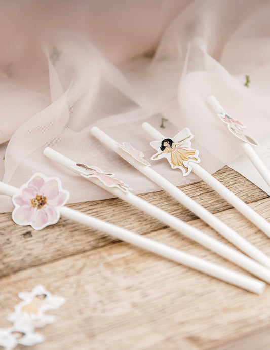 12 slamic za pravljice, bel in pastelno roza papir, 19,5 cm za otrokov rojstni dan