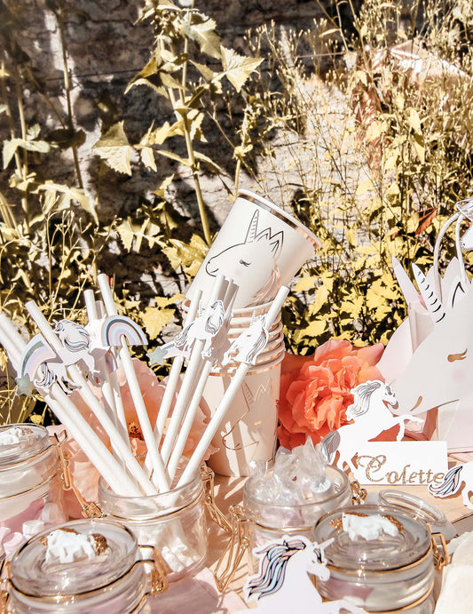 12 pastelnih in zlatih slamic v obliki samoroga 19,5 cm za rojstni dan