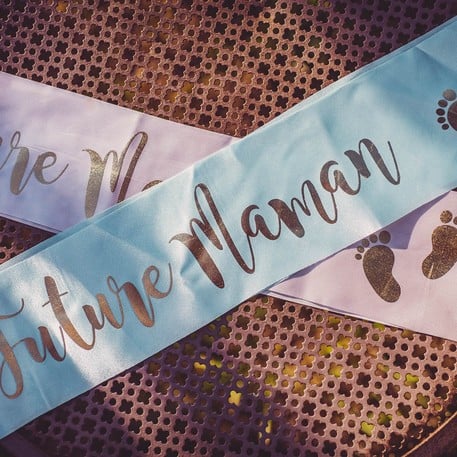 Roza in zlat satenast pas za bodoče mamice, popoln za otroško zabavo.