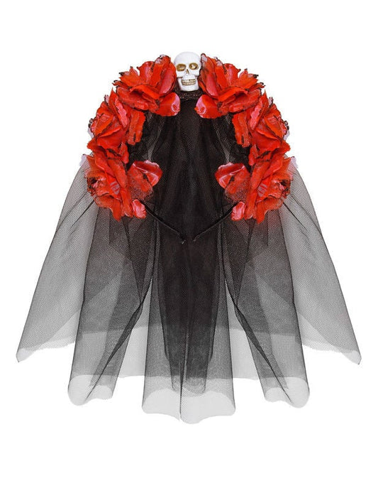 Rdeča cvetna kapica s smrtjo glavno žensko Dia de los Muertos