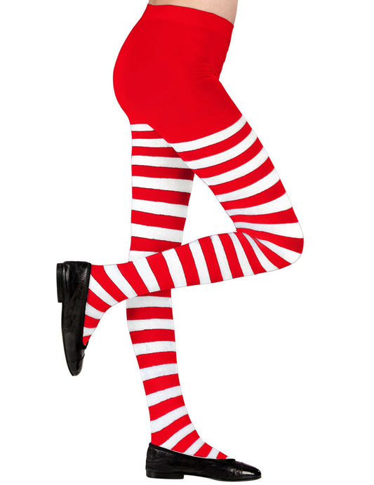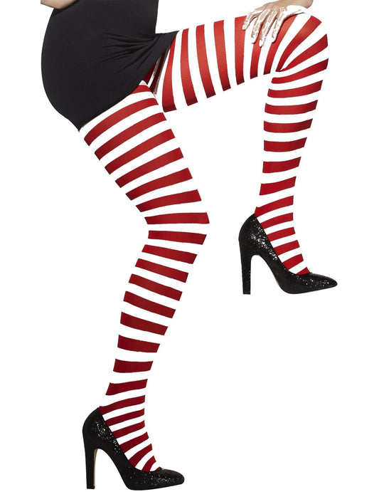 RazprodanoŽenske črne in rdeče črtaste hlačne nogavice