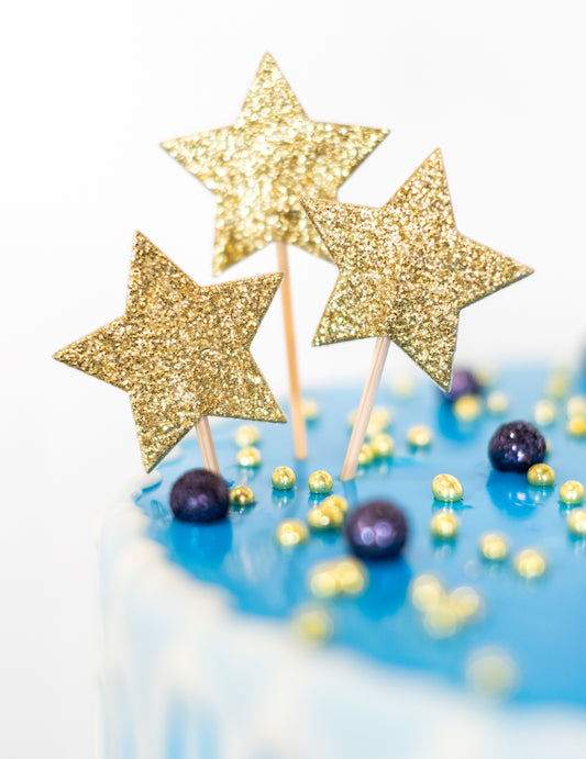 Razprodano12 okraskov za torto na bleščečih zlatih zvezdastih okraskih 6,5 cm za rojstni dan
