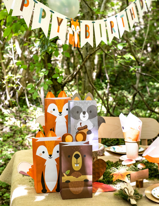 Razprodano8 papirnatih darilnih vrečk z motivom gozdnih živali, 11,4 x 20 cm lisica bober