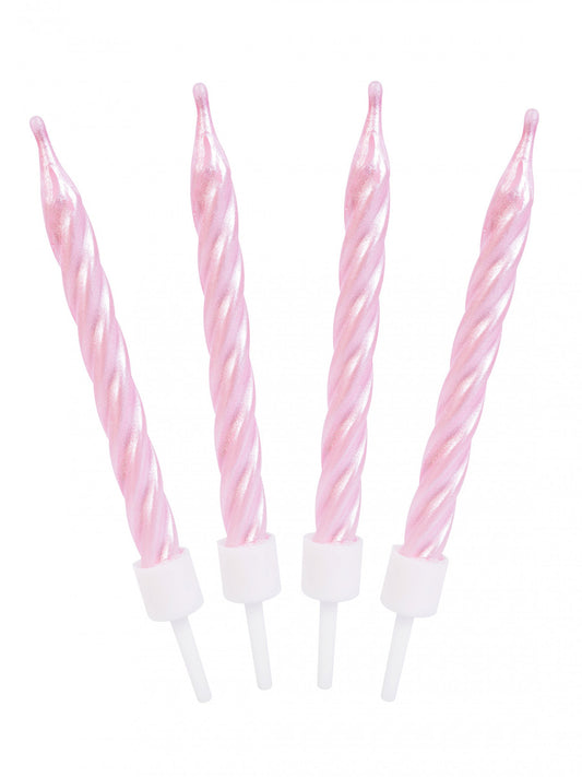 12 rojstnodnevnih svečk v fuksija roza barvi z bleščicami 6 cm s podstavki
