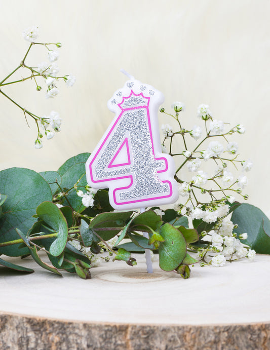 Rožnata biserna svečka v obliki številke 1, 9 cm, posuta z bleščicami