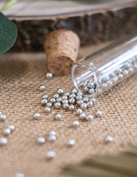 RazprodanoSladkani mandlji s srebrno biserno prevleko, 70 g, za poroke