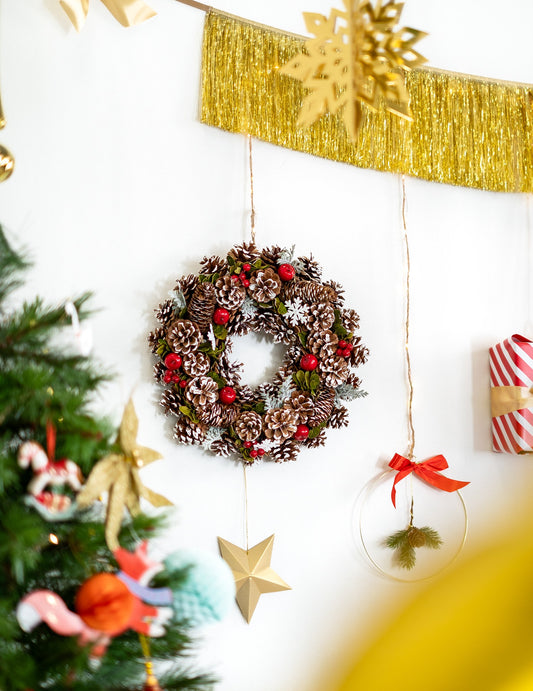 ZnižanjeDekoracija za obešanje zlatih severnih jelenov in 35 cm borove stožce