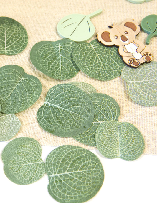 Razprodano40 konfetov iz listov evkaliptusa, 2,5 do 3 cm naravna poročna tkanina