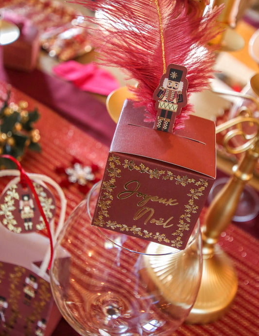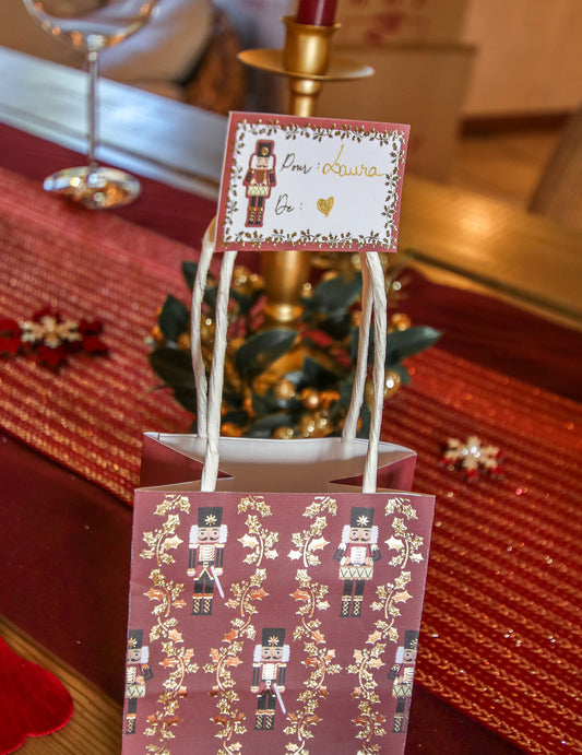 Razprodano4 praznične vrečke Hrestač v bordo in bleščeči barvi, 10 x 11 x 7 cm