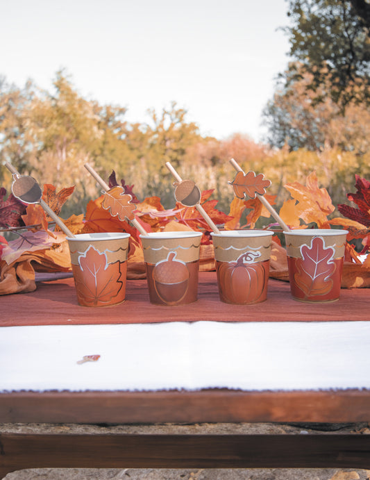 Razprodano8 papirnatih krožnikov z vzorcem jesenskih listov 23 cm zlata obroba