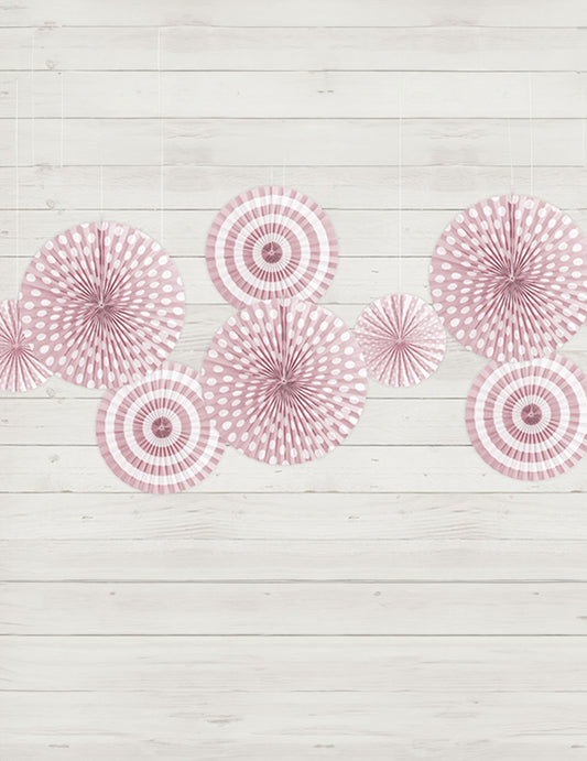 Razprodano4 svetlo rožnate papirnate rozete 23, 32 in 40 cm s pikami in črtami