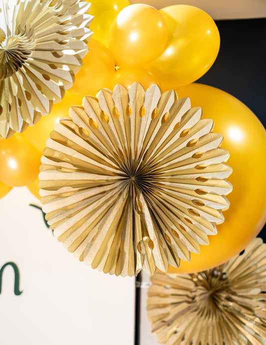 RazprodanoZlata papirnata rozeta 40 cm, viseči dekorativni pahljač