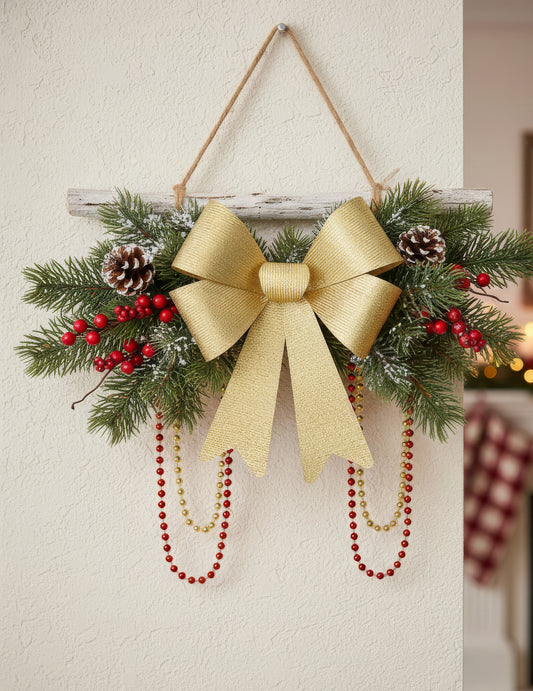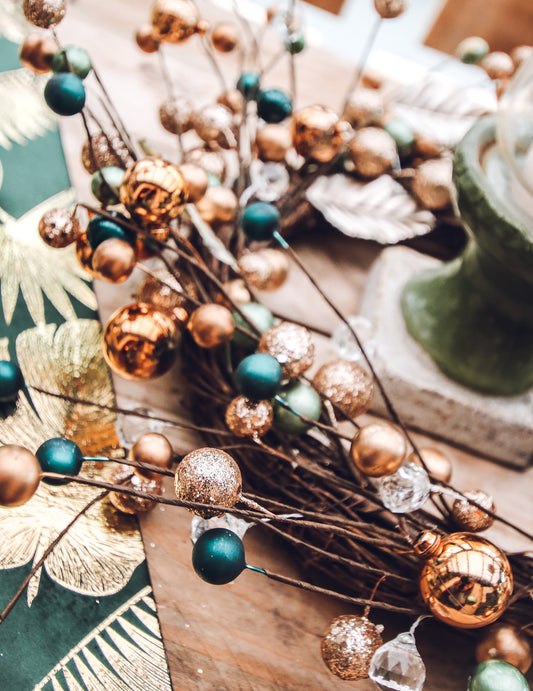 RazprodanoDekorativni venec z vejami in bleščečimi kroglicami 40 cm zlata