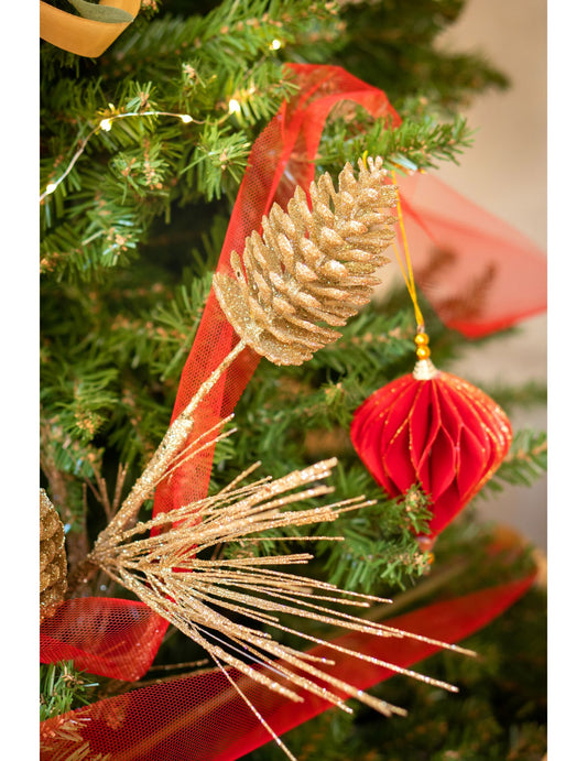 RazprodanoVeja borovega storža in bleščeč jutin trak 23 cm Božični okraski