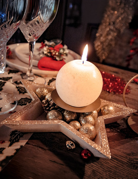 RazprodanoLesen osrednji okras, svečnik v obliki zvezde, zlate bleščice, 24,5 cm za božič