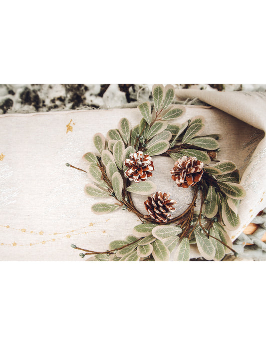 RazprodanoObroč za prtičke iz jelke in storža 12 cm čokoladne bleščice