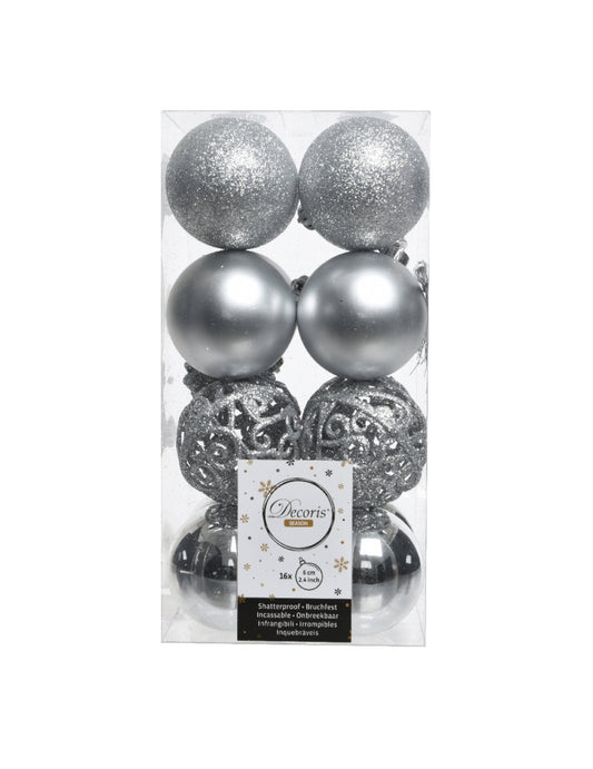 Razprodano16 majhnih srebrnih božičnih kroglic 6 cm z različnimi učinki