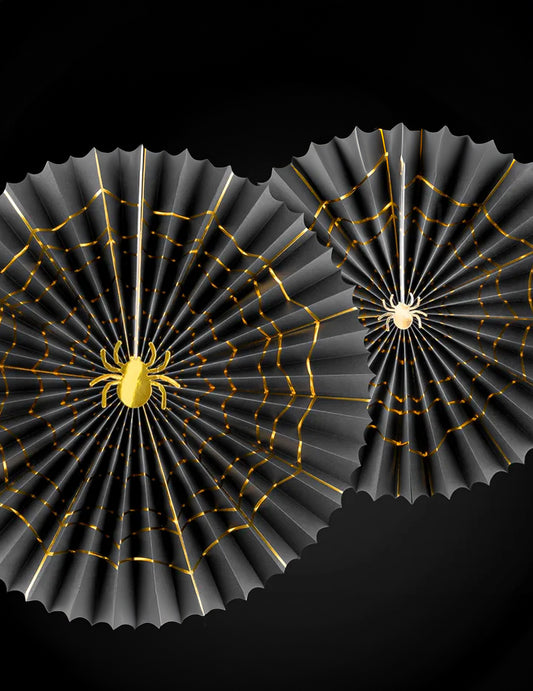 Razprodano2 okrasni črno-zlati papirnati rozeti v obliki pajka, velikosti 32 in 40 cm za noč čarovnic
