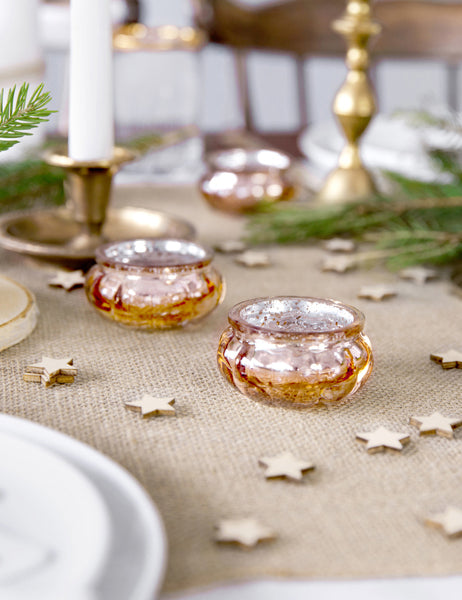 4 svečniki iz rožnatega zlata iz zrcalnega stekla 6 x 3 cm za božič