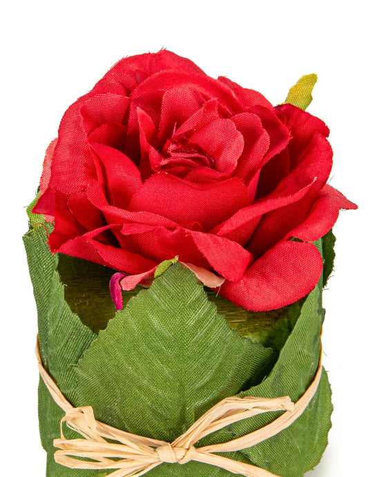 Rdeča vrtnica v lončku z listjem velikosti 8 x 6 cm za poroko