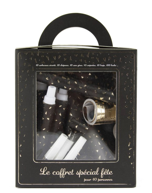Škatla s konfeti za novo leto za 10 oseb v črni in zlati barvi