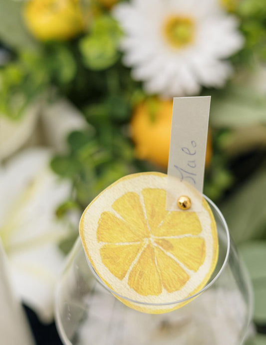 10 rumenih papirnatih kartic za postavitev v obliki rezin limone