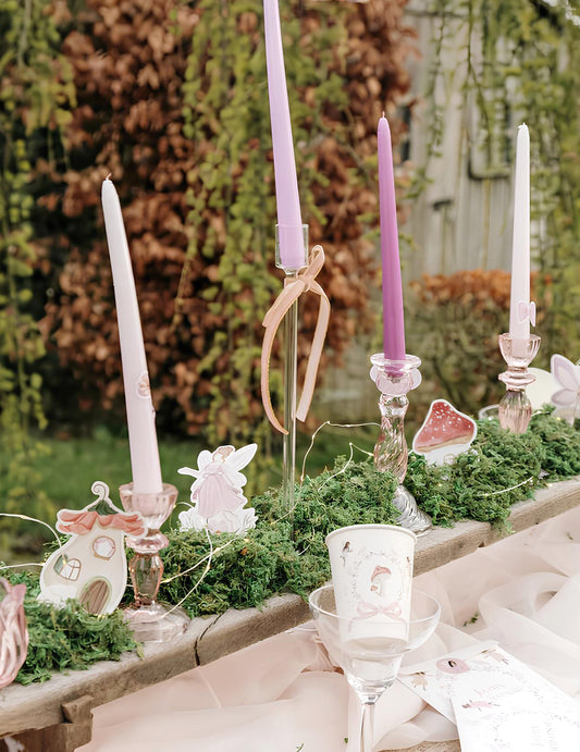 6 pastelno roza papirnatih okraskov v obliki vil, visokih od 6,8 do 10 cm cm začarano vesolje
