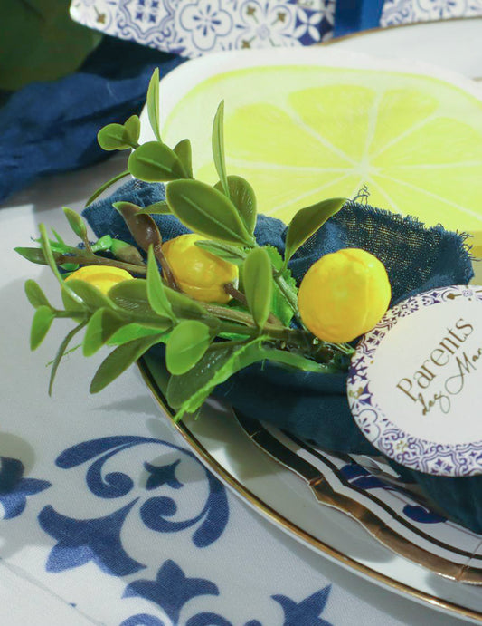 12 konfetov v obliki limone, rumen in zelen les, dekoracija za mizo