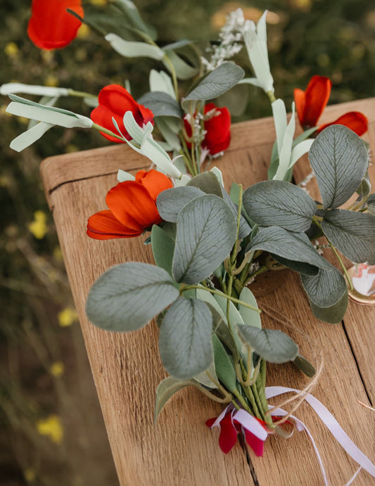 Girlanda iz rdečega listja in cvetja, 1,83 m, podeželski slog