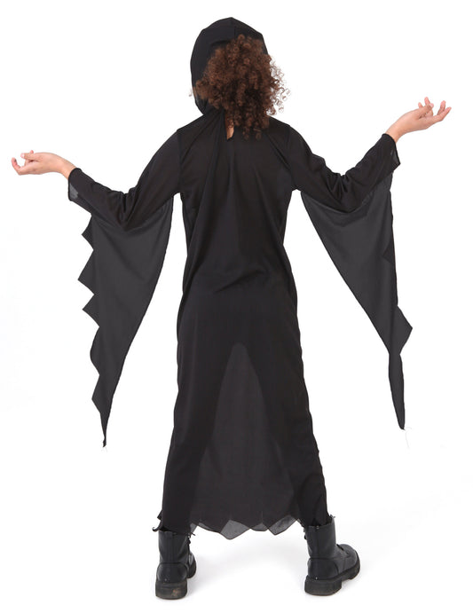 Vključeno : 1 robe longue , Manches longues , 1 Capuche pointue et cornes intégrées , 1 Ceinture noire