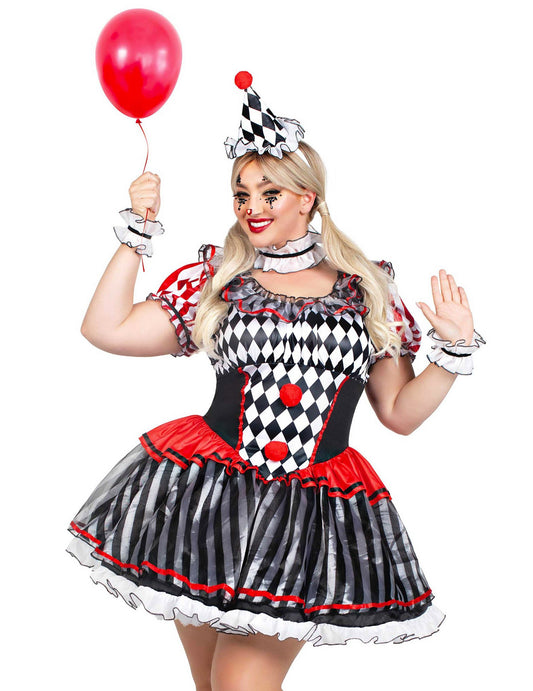 RazprodanoČrno -beli seksi arlekinski kostum velike velikosti