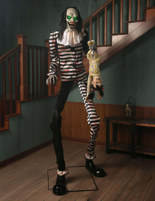 Animirani dekoracija zastrašujoča klovn z visečim otrokom z gibi in lučmi 2.15m