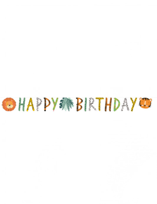 Vse najboljše za rojstni dan, prejmete girlando z motivom divjega safarija 180 x 15 cm lev in tiger