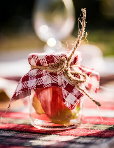 Rdeč in bel retro karirasti laneni trak 5 cm x 5 m v stilu ginguette