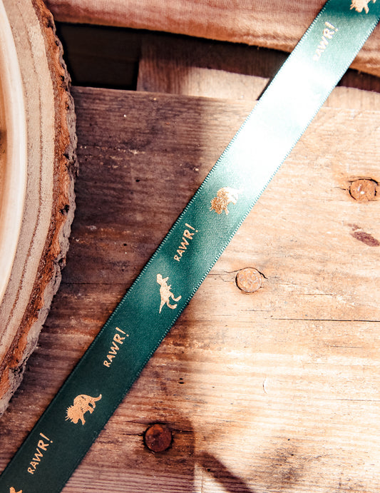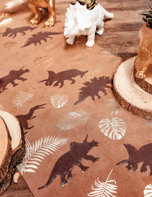 Prtljažnik z dinozavrom iz kameljega semiša 28 cm x 3 m zlati listi