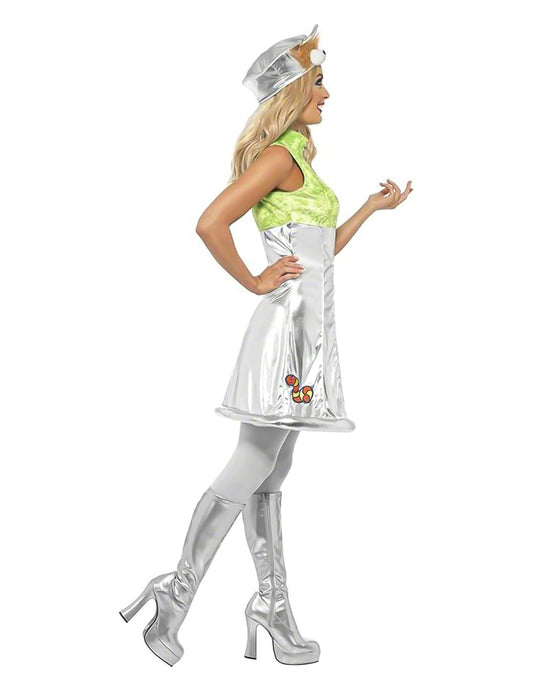 RazprodanoKostum disko dama 60. in 70. leta srebrno-metalik