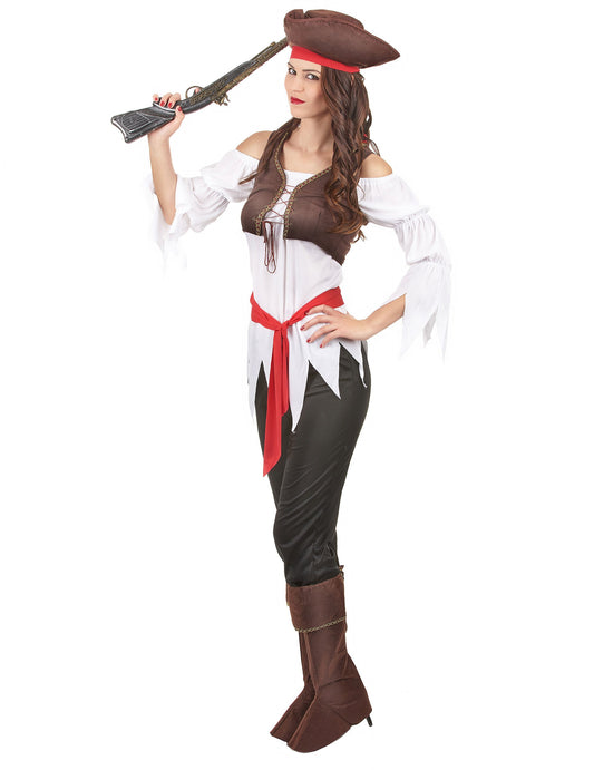 PromocijaRjava in bela gusarska preoblečena ženska