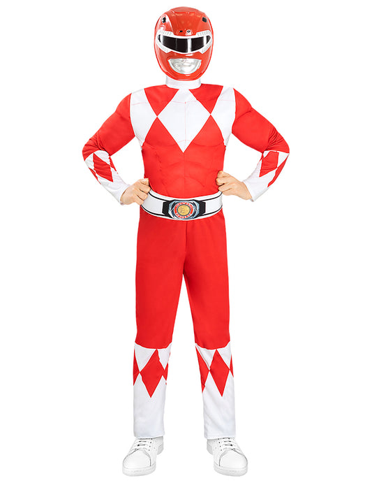 RazprodanoMišičast rdeč kostum Power Ranger za otroke
