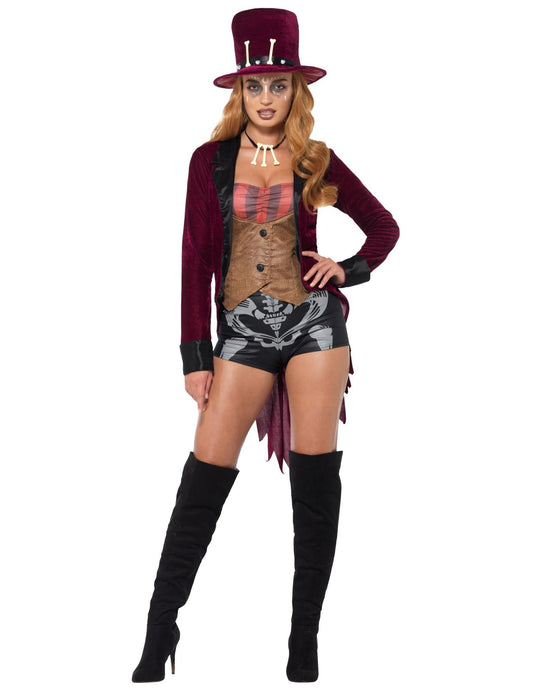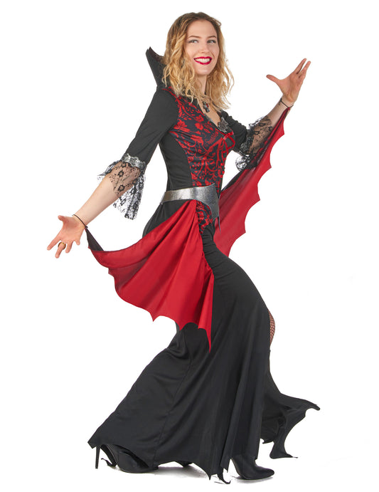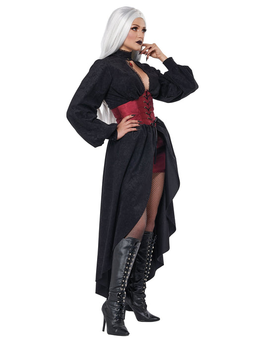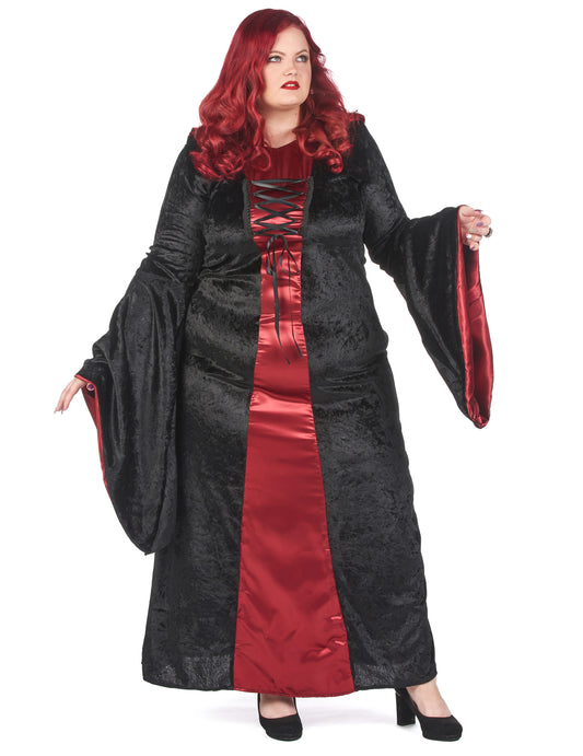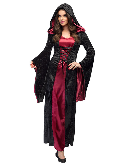 Velik kostum gotske velikosti z rdečo in črno žensko kapuco