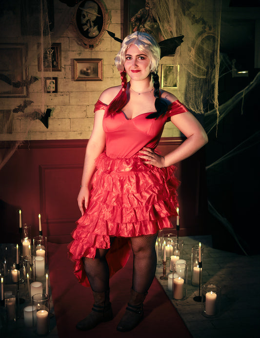 Vključeno : Visoko, Pantacourt, vrat rdeč, pas, 2 dolga palčnika