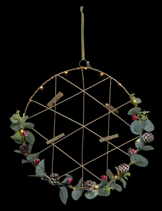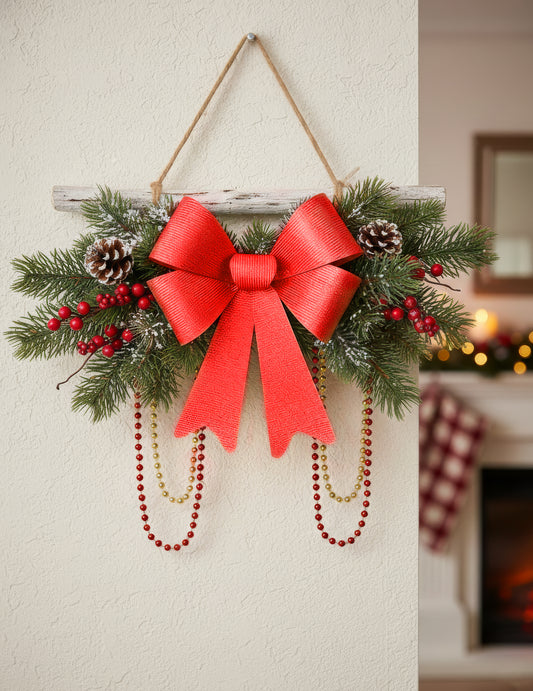 PromocijaViseča krona z zasneženimi božičnimi drevesci in storži 28 cm