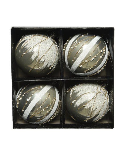 Promocija4 božične kroglice z belimi in zlatimi bleščicami 8 cm